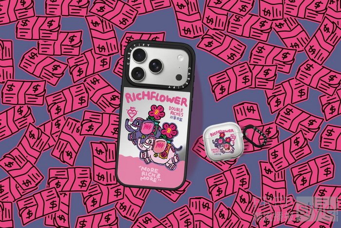 此次 CASETiFY | RICH FLOWER 有钱花艺术家系列以独特风格演绎新春好运符号,推出六款充满创意与美好寓意的手机壳:“爆花富” 以拉霸机定格三花齐放,寓意好运爆发;“恭喜花财” 汇集花朵、金元宝、双喜等多重幸运图案,随身携带好运加持;“金上添花” 以标志性粉金花朵传递好运加码的祝福;“双象奔富” 象征着有情人成双成对,并肩前行,一同奔向富有的美好生活; “马上幸运” 将旋转木马化身幸运载体,转运轻松自如,马到成功如期而至;而 “马祝福气” 以绚丽色彩呈现旋转木马,寓意着福气层层叠加,好运源源不绝!除手机壳外,本系列亦同步推出 AirPods 保护壳、iPad 保护壳、笔记本电脑保护壳、笔记本电脑保护套、磁吸手机指环扣、磁吸手机支架、磁吸卡包支架、iWatch表带等丰富科技配件,让好运在新春的每一个角落持续延展。