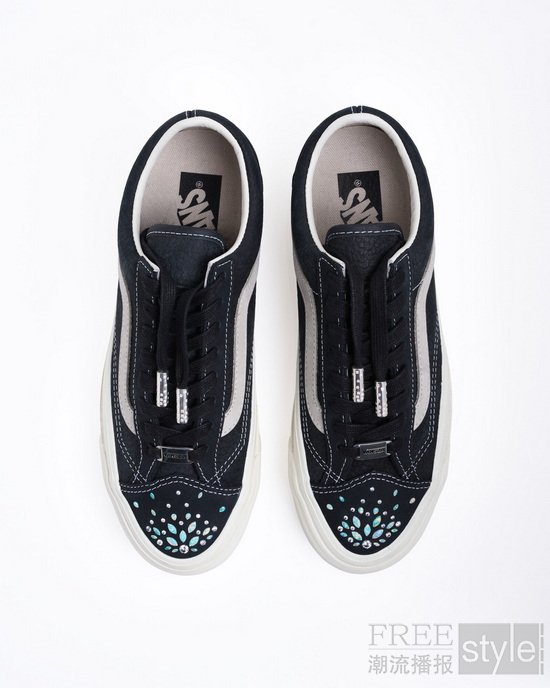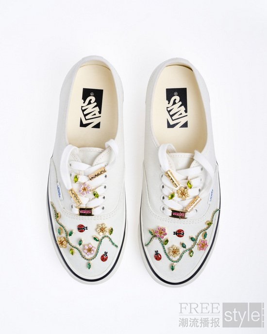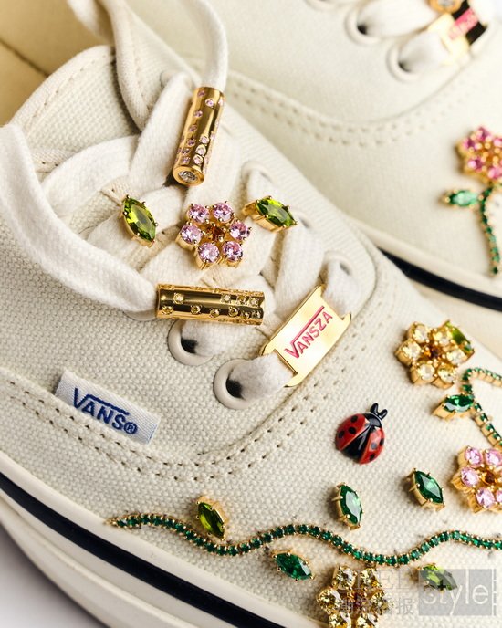 除路易·威登男装秀现场亮相的 “Ladybug Garden” 鞋款外,Rachel Goatley 还为 SZA 本次巴黎时装周之行特别设计了另外四双全球唯一的定制 Vans 鞋款。此次合作围绕 Vans 经典鞋型 Authentic 与 Old Skool 展开,每双鞋均搭配纯银手工打造,并辅以镀金工艺和珐琅工艺的鞋带扣 ,带有专属“VANSZA”字样,同时鞋面用精湛工艺镶嵌多种宝石材质,为 Vans 经典鞋款注入更具个性化和层次感的细节表达。