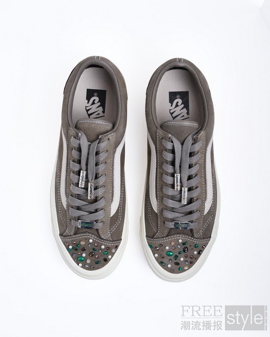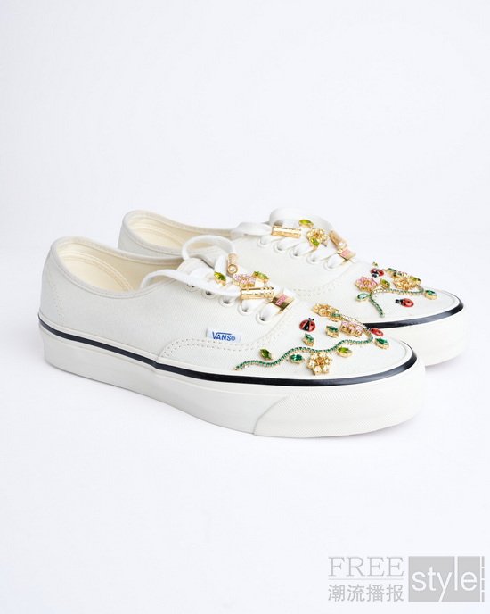 Rachel Goatley 是一位自学成才的珠宝设计师,同时也是 Greg Yuna New York 的创意合作伙伴。过去十年间,她长期从事高级珠宝设计创作,其作品以细腻的手工表达与对形态、色彩关系的关注见长。本次合作中,她将自身的珠宝设计语言延伸至鞋履之中,在 Vans 经典鞋型上呈现出更具辨识度的装饰风格。
