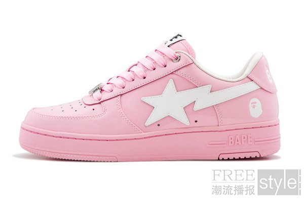 此番释出三款呼应早春时节的惊艳配色,黑白双调作为永不过时的常青必备,以强烈的视觉反差彰显BAPE STA™星形标识的犀利锋芒。清新亮相的樱花浅粉配色,则以摩登姿态为复苏季节增添灵动生机。鞋身通体采用亮面漆皮打造,赋予鞋款夺目光泽与高级质感。
