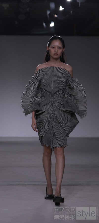 YIBIN CHEN春夏系列主题为《流动与永恒》,本季灵感来源于哲学家鲁米关于生命中不同状态的思考,通过冥想以及自我意识的解放,到达天人合一的境界状态。我们将这种状态定义为过去、当下和未来,以神秘的暗黑主义契合过去,以流动的压褶工艺寓意当下,以3D软雕塑面料象征未来。
