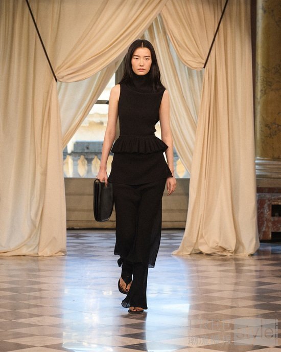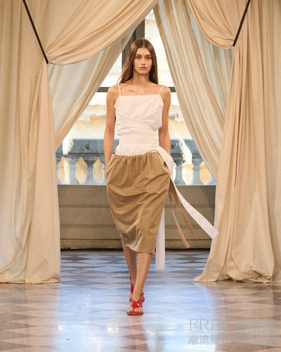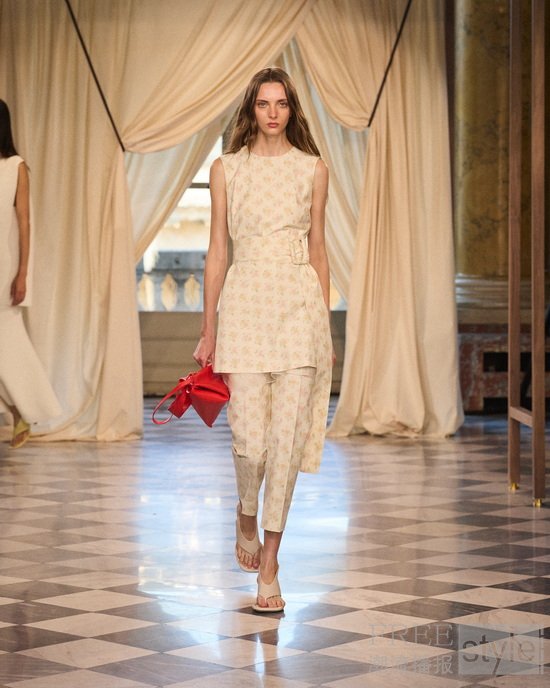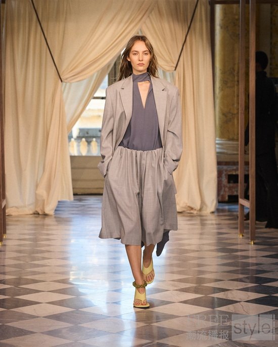 在创意总监Bénédicte Laloux的构想下,本季春夏系列以流动的天然材质,捕捉微风的痕迹。面料轻泛波纹,材质于气息间塑就其形。受简约几何图形启发,量感的打造形诸窗的构建,探索矩形、圆形与方形的极简本质。垂褶、收褶与裥褶,令廓形始终处于流转变幻中。