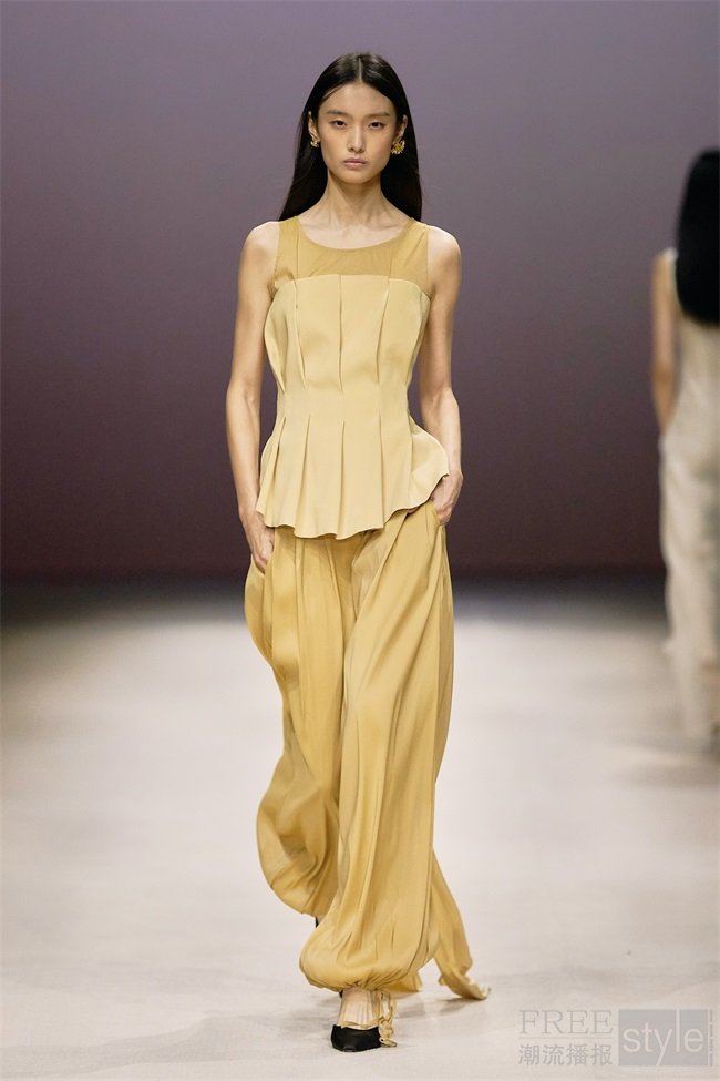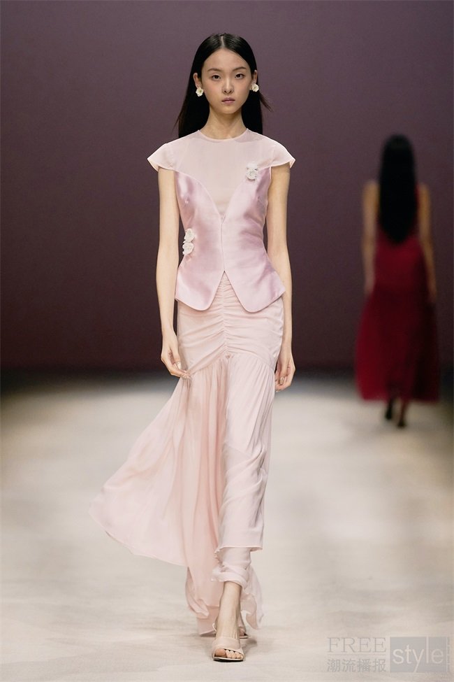 整场秀如梦似幻,嘉宾仿佛步入一方静谧而诗意的奢境。灯笼的柔光洒落在丝绸与纱之间,构筑出含蓄而感性的东方叙事空间。这不仅是一场视觉盛宴,更是AWAYLEE对中国传统文化的深情致敬——以当代设计语言唤醒古老艺术的灵魂,再次印证品牌始终从中国文化根源中汲取灵感,并将其化为面向未来的创造力。