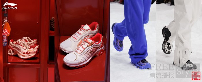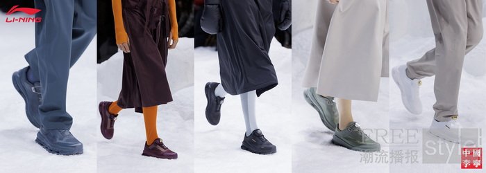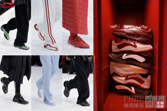 中国李宁本季女子鞋履带来适配多元场景的进阶表达,全新“玲珑RACER”,以赛车运动为灵感,结合流畅线条,营造出高级优雅的复古氛围,是时装和运动的全新结合。“贴地飞行ACE”,灵感源自李宁经典羽毛球鞋,以复古未来的风格打造出全新的先锋形体。芭蕾风格的“玲珑”和复古风格的“乒乓”,也围绕本次秀场的主题,推出了更加多元的材质和配色。另外,品牌推出以啄木鸟头部生物缓冲系统为灵感的多级缓震结构概念鞋款,极具未来感和实验性。