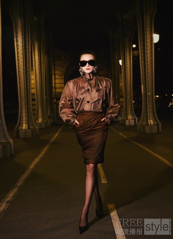 圣罗兰中国形象大使宋佳身着SAINT LAURENT圣罗兰2025夏季女士系列聚酰胺花结衬衫、聚酰胺铅笔裙、SL 902 HOWL太阳眼镜...
