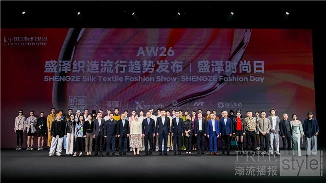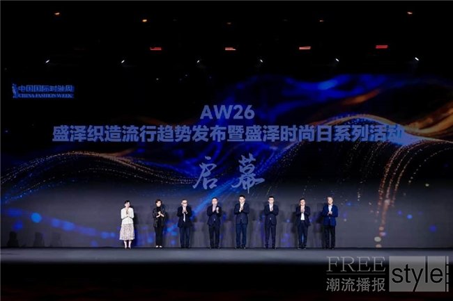 活动上还举办了“26秋冬盛泽织造流行趋势发布暨盛泽时尚日系列活动”的启幕仪式。作为本次发布的重要环节,孙瑞哲、徐迎新、陈大鹏、阎岩、胡松、杨健、陈宇、孙琴萍共同登台,为“盛泽织造”的集体亮相拉开了华美的序幕。这一仪式的举办,不仅正式宣告盛泽以区域品牌为核心、联动本土优势企业的集群化亮相模式的启动,更开启了盛泽在本季中国国际时装周集中展示织造实力、传递绸都时尚能量的全新篇章。