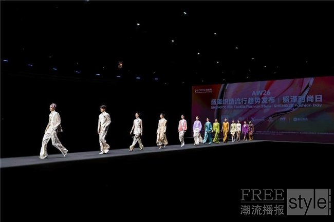 作为“AW26流行趋势发布秀”的收官之作——「AW26盛泽织造流行趋势发布丨盛泽时尚日」于3月24日惊艳亮相2026中国国际时装周(春季)。本次发布秀以中国纺织信息中心、纺织产品开发中心发布的“2026/27秋冬中国纺织面料流行趋势”为设计蓝本,汇聚罗曼罗兰、新曼丰、维泰丝绸、恒信织造四大盛泽标杆企业的匠心之作,以深厚的产业底蕴与现代时尚交融碰撞,为时尚产业的秋冬画卷注入全新灵感与妙想。