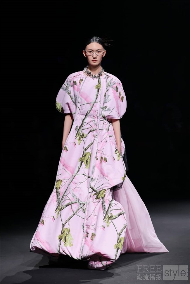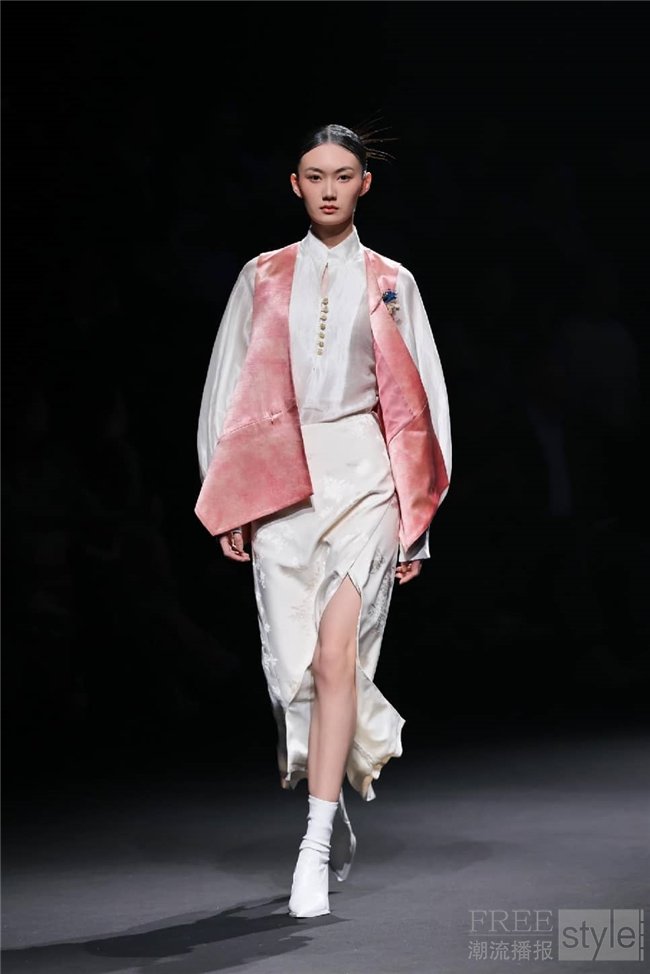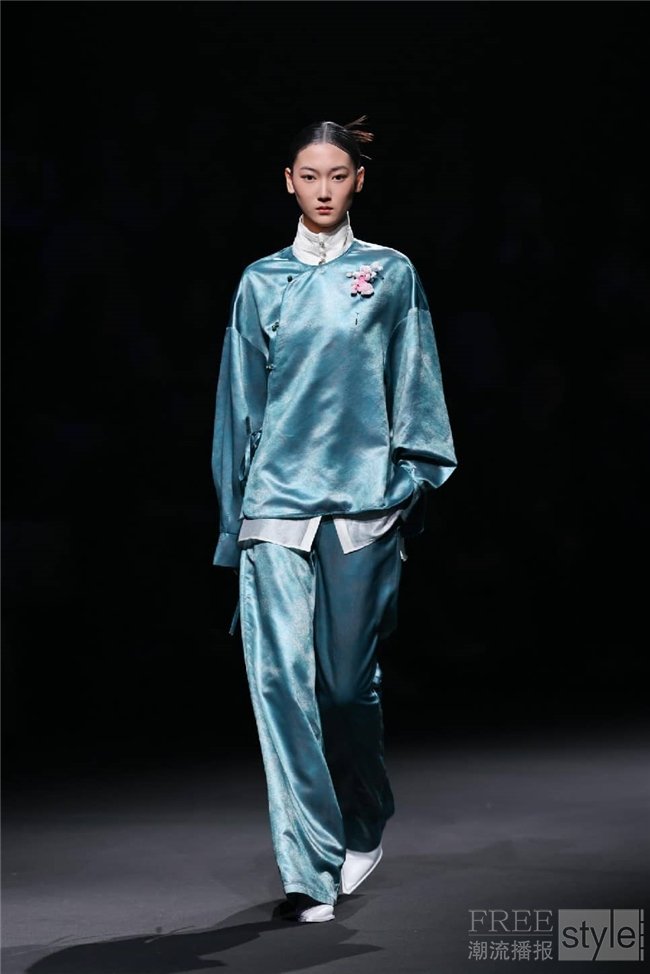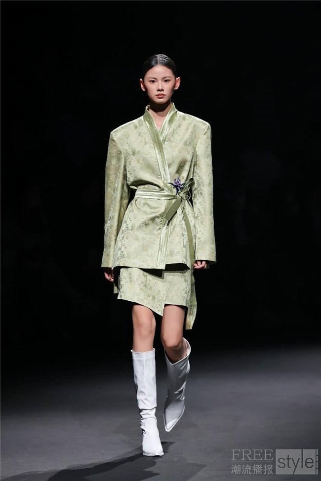 恒信织造通过“流淌”主题,打造出一场兼具东方传统美学与自然休憩感的潮流梦境。包括醋酸在内的一众优质纤维素面料,通过柔润飘逸的质感和充满雅韵的光感,成为温柔与诗意的绝佳载体。部分织物以丝滑触感搭配优雅自然的肌理,显露灵动的韵味,同时利用独特的提花织造工艺,将流水、竹影等意象织就成细腻暗纹,在经纬交错间勾勒流动光影,为服装的叠搭强化梦幻的意趣。一系列表面带有哑光、微皱外观的面料兼具生态可持续属性,搭配生物印染工艺呈现的优雅治愈色彩。为烘托面料的质感,衣角处立体装饰的非遗绒花引发关注,于感性浪漫的氛围中,映衬出静雅的传承之美。