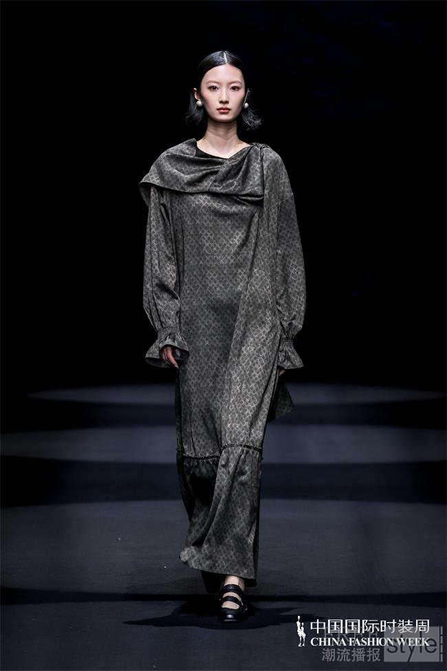 尾声则将色彩归于大地的温暖与浓郁,以咖色为主基调的菱形格纹花苞连衣裙,与兼具披肩设计的大衣式外套,均极具设计分量感,如同故事终章迸发的希望,含蓄而有力量。