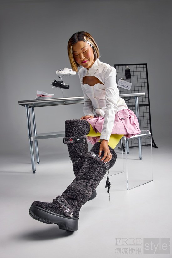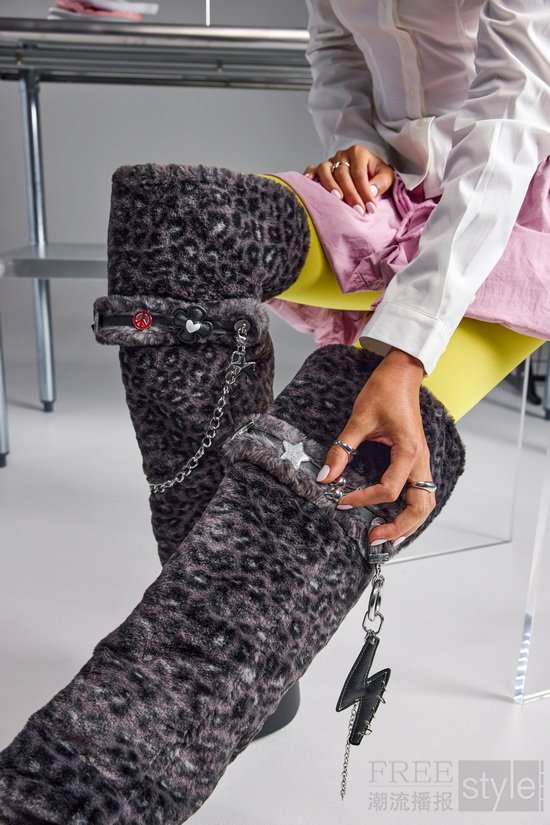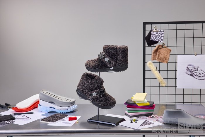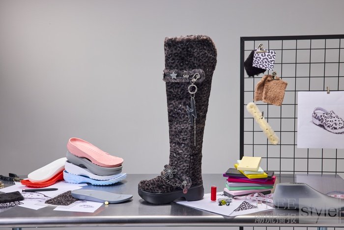 经典雪绒豹纹过膝靴的设计灵感,源自粉丝对兼具高级时尚表现力与舒适脚感靴履的梦想。靴款整体高达90厘米,成为Crocs有史以来推出的最长的鞋款,以柔软的环保豹纹毛绒包裹鞋身,缀以17枚智必星™鞋花装饰。并引入夹扣和金属铆钉等新设计元素,彰显极致的个性化表达,以别具一格的纹理与狂野风格,持续定义舒适潮流。