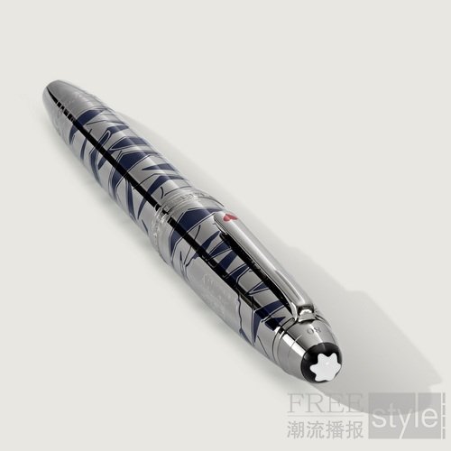 ● 万宝龙大班系列《八十天环游地球》特别款贵金属豪华书写工具包含墨水笔、签字笔与圆珠笔可供选择。该款书写工具的笔帽和笔杆均经由镀钌工艺精心打造而成,通体饰有精美的深蓝色漆料浓烟云雾和压力阀图案。笔帽侧面饰有激光雕刻的蒸汽火车图案,并饰以长方形精致边框。墨水笔笔咀采用18K金制成。