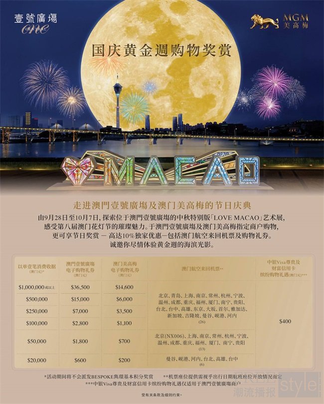 美高梅与澳门壹号广场黄金周购物庆典/礼遇