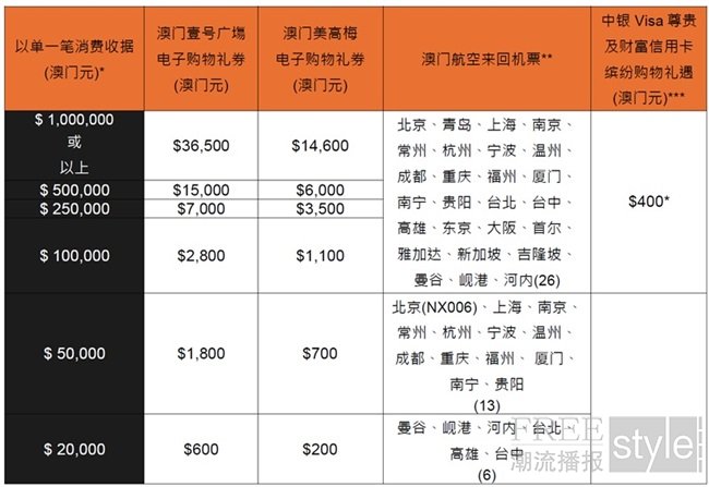 ***中银Visa尊贵及财富信用卡缤纷购物礼遇仅适用于澳门壹号广场商户