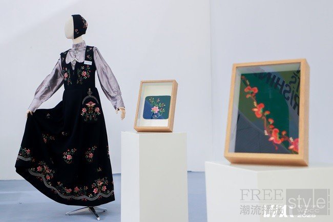 上海苗好服饰带来挪威传统民族服饰 Bunad。作为“穿在身上的历史”,Bunad 以复杂的刺绣、串珠与织造技艺凝结匠心,承载身份认同与文化根源。苗好在传承中融入创新,推出刺绣发箍等年轻化设计,并探索与新材料、新科技结合的路径,使传统工艺走向日常化与跨界应用,让古老技艺在当代焕发新生。