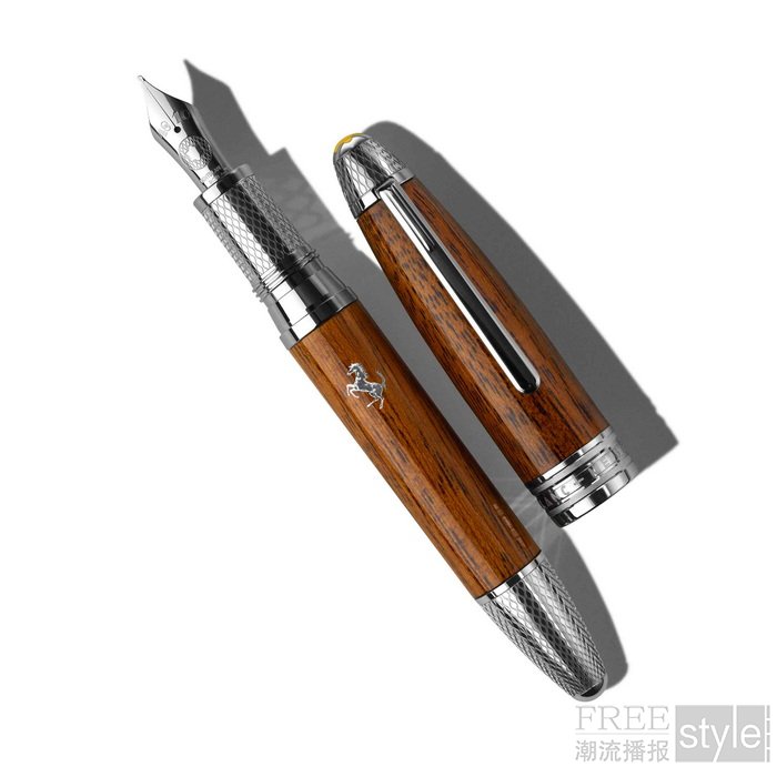 该特别款书写工具精选红影木打造笔帽和笔杆,背面装饰黑色漆艺饰线,呼应经典法拉利GT跑车的方向盘设计细节和细腻触感。笔杆前端、笔杆尾端和笔帽顶端均采用镀铂金材质,可联想到跑车的镀铬抛光饰面;其上雕饰网格纹,精准复刻初代法拉利GT跑车三幅式方向盘金属辐条的独特纹理。每处细节均透露出经典传承和无拘风范的非凡格调。