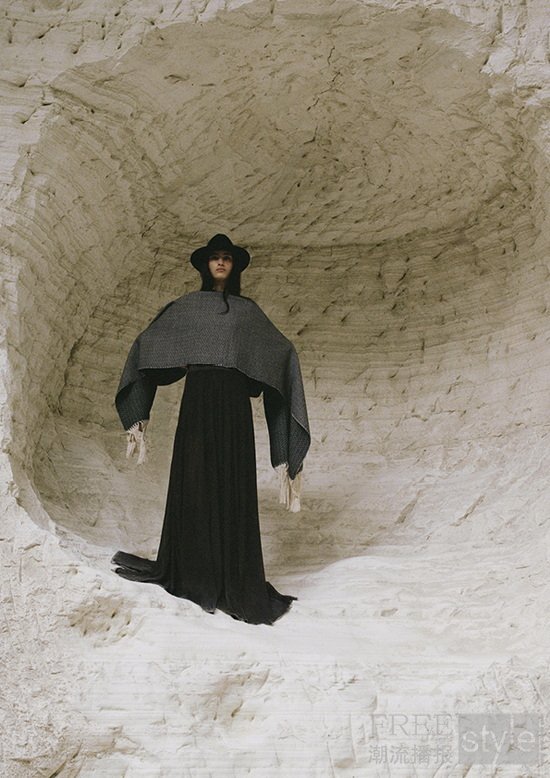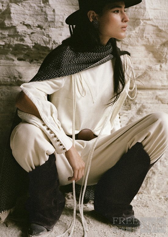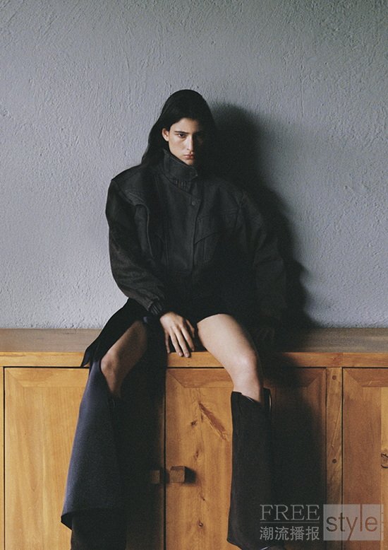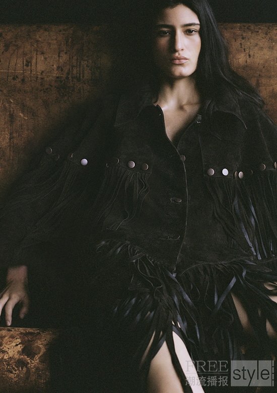 本季系列选用天然亚麻与复古水洗牛仔等原生材质,延续设计师对工艺质感的坚持,色调灵感则取自阳光褪色后的中性色与大地色,传递出贴近自然、内敛而优雅的气质,并通过鲜明廓形结合柔和线条,以此演绎力量与浪漫的平衡。标志性的牛仔飞行夹克搭配经典西部靴造型,与柔软垂坠的上衣和礼服相互映衬,描绘出自由而坚定的现代女性形象;麂皮流苏外套与不对称裙装流露率性姿态,黑色缎面雪纺露背礼服与非对称领口上衣则呈现夜色下的感性张力;刺绣卫衣与单肩针织上衣等休闲单品,亦为整体造型注入随性气息。配件部分多处细节融入设计师的个人印记,耳环与金属纽饰的灵感源自 Lorena 祖母的狮子造型珠宝,承载情感与传承之意;标志性的棕色麂皮长靴以木质鞋跟设计,象征女性的稳健与力量;宽檐帽与装饰性皮带则为整体造型增添率性姿态与自信风度。