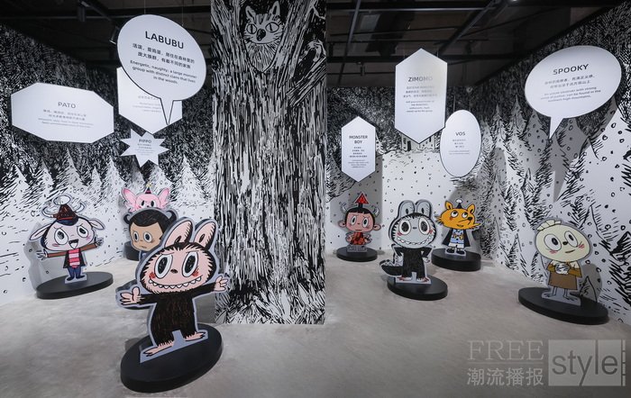展览共分为六大主题区域,观众可沉浸式感受THE MONSTERS的奇幻世界:“奇幻森林” 区域还原了LABUBU与精灵伙伴居住的奇幻森林场景,悄然现身的它们,陆续投递来俏皮的问候; “艺术回廊” 区域展出了艺术家龙家升的原画作品,呈现每个IP角色从概念到成型的完整过程,感受艺术家笔下的温度与奇想,回到THE MONSTERS艺术世界的原点;“手稿研究室” 则汇集百余张珍贵手稿,重现每件作品诞生的最初时刻;“光影游乐场” 在灯光渐暗之际,悄然开启一场妙趣横生的游戏,爱捣蛋的LABUBU于光影之间玩起了捉迷藏;“镜屋” 陈列了自2015年至今的THE MONSTERS公仔,镜面的多重反射构筑出虚实交织的视觉幻境,进一步展现无限延伸的艺术宇宙。此外,在户外广场上有来自THE MONSTERS家族的KING MON化身为6米高的雕塑,指向上海的地标建筑——东方明珠,等待着与你击掌相见;家族精灵们也调皮地趴在玻璃窗边,注视着来往的行人。