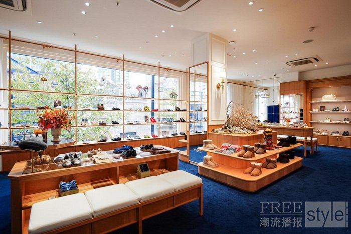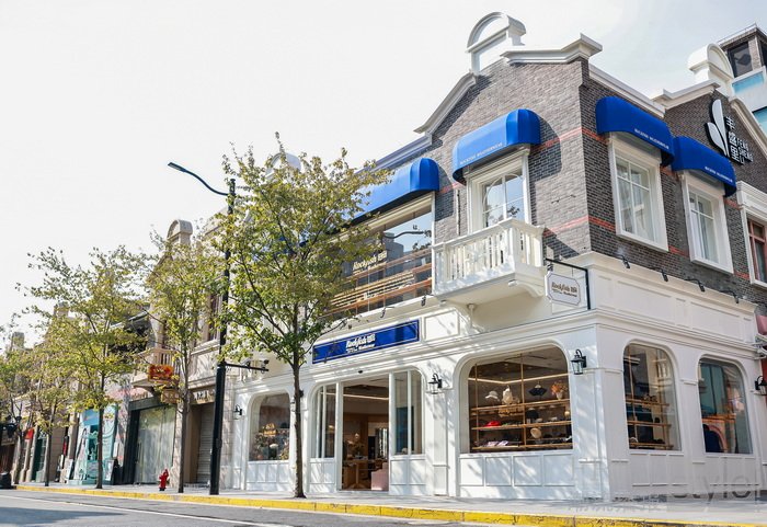 品牌全新旗舰店坐落于海派风情与都市活力交织的南京西路商圈丰盛里,空间设计延续英伦复古基调,并巧妙融入韩系美学元素,营造出兼具时尚感与温馨氛围的双层时尚空间。旗舰店外立面以品牌标志性蓝白色调呼应历史建筑风貌,拱形橱窗复古精致,与街区风格相映成趣。