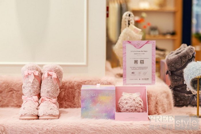 本次开业的另一大亮点,是Rockfish Weatherwear与设计师品牌SUSAN FANG的联名系列发布。该系列以“A Gift from The Stars(繁星之礼)”为主题,从星空与伦敦夜景中汲取灵感,在时尚鞋靴与包袋配饰中注入雪花、星光、月光的梦幻瞬间,此次合作不仅是设计与功能的对话,更以温暖梦幻的风格诠释冬日时尚,呼应品牌围绕四季更迭持续推出应季潮流单品的理念 —— 在不同时节,为都市穿搭注入新鲜灵感。
