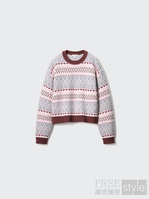 费尔岛风毛衣,英伦风趣味提花,复古时髦;落肩短款,自在俏皮;
