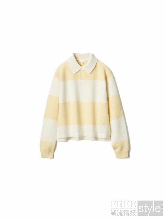 条纹Polo针织,活泼拼色条纹,靓丽吸睛,柔软绵羊毛面料,精致Polo版型,型暖冬日;