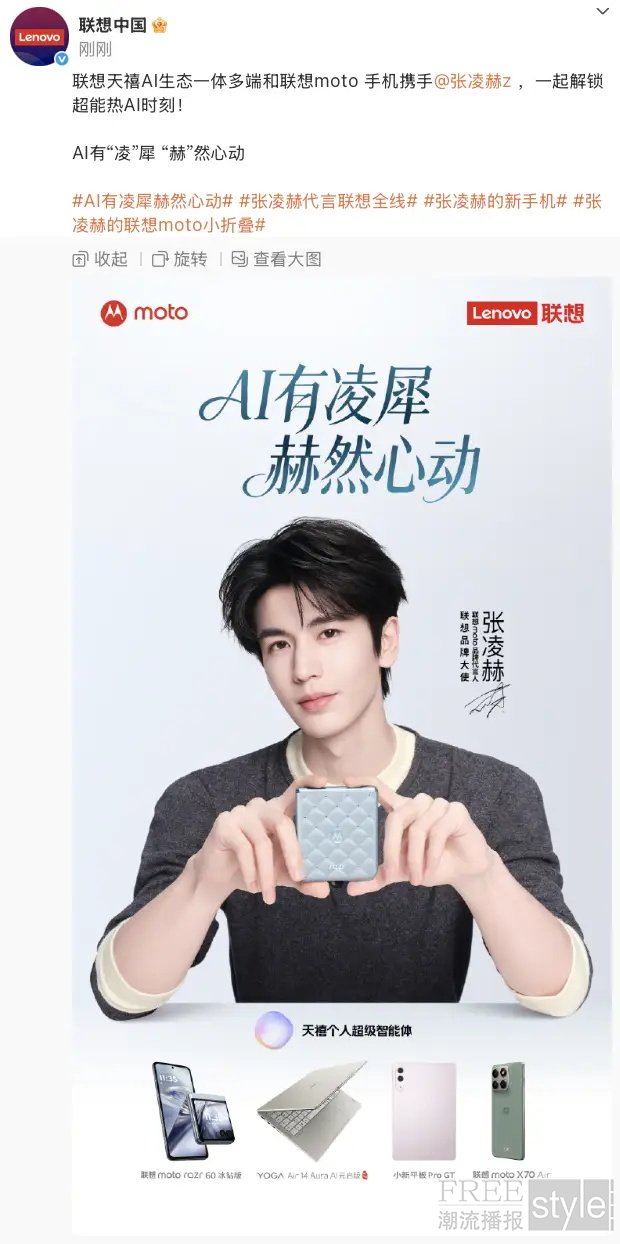 联想官宣:张凌赫出任品牌大使及联想moto品牌代言人