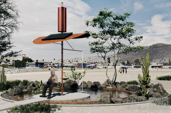 该项目计划落地于墨西哥城最缺水的社区之一——奇马尔瓦坎(Chimalhuacán)。项目将在现有的体育场地内建设一座530平方英尺的社区空间,地下设有10,000升蓄水罐,用于收集并储存雨水与地下水。通过一套五级太阳能驱动的过滤系统,每年可产出约23万升可饮用水。