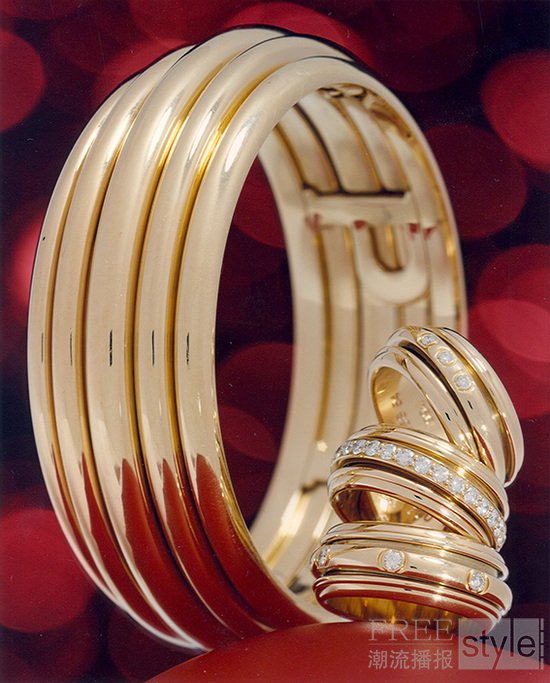 基于金工世家的匠心传承,Possession时来运转系列于1990年耀目问世。作为PIAGET伯爵首个适宜日常佩戴的珠宝系列,该系列作品采用别致的可旋转设计,实现精致意趣与隽永优雅的完美融合。这些灵动的珠宝作品,于佩戴者举手投足间自然流露优雅气息,捕捉时光流转中的每一个欢愉瞬间。Possession时来运转系列不仅是点缀日常造型的珠宝,更如传统护身符般,蕴含深邃象征与隽永意义。PIAGET伯爵以当代表达重塑传统护身符的精神意蕴,令珠宝超越装饰本身,与佩戴者建立起一种深刻的情感连接。历经焕新演变,该系列项链、手镯与耳环以当代设计重塑经典美学。每一件作品皆秉承纯粹简约的设计理念,于细节处彰显精致之美,无论是单独佩戴,亦或叠戴混搭,皆能展现多元风格。随着Possession时来运转系列不断推陈出新,PIAGET伯爵作为金工世家的深厚传承亦演进不止,但其核心理念始终如一:彰显PIAGET伯爵精湛的宝石镶嵌工艺(无论镶嵌璀璨钻石,亦或是呈现渐变效果的彩色宝石,皆赋予作品奢美夺目的虹彩);并艺术性地将精妙巧思倾注于珍贵宝石,映耀日常生活中的欢愉时刻。PIAGET伯爵历史典藏中收录了逾千种金工技艺,如今最具代表性的莫过于宫廷式图腾装饰(Decor Palace)。这一经典设计诞生于1961年,灵感源自制表行业的玑刻雕花工艺。巧手工匠于黄金表面手工雕琢出繁复精细的纹理,恰如画家在画布上挥洒灵感,每一道纹路皆凝聚着匠心巧思。