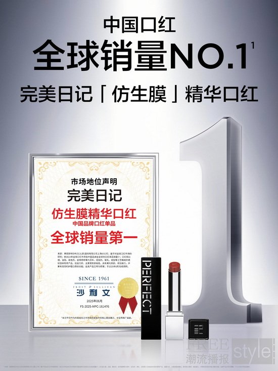 诺贝尔奖教授Hartmut Michel高度肯定完美日记将前沿科技融入日常抗衰的突出成效,并特别指出,“完美日记基于诺贝尔奖的同源科技,正在让前沿科技走进日常生活,为消费者带来更科学、更高效的抗老体验”。沙利文机构也于现场为完美日记「仿生膜」精华口红颁发全球销量第一认证,标志着国货美妆科研实力再获国际权威机构认可,其市场领先地位得到有力印证。