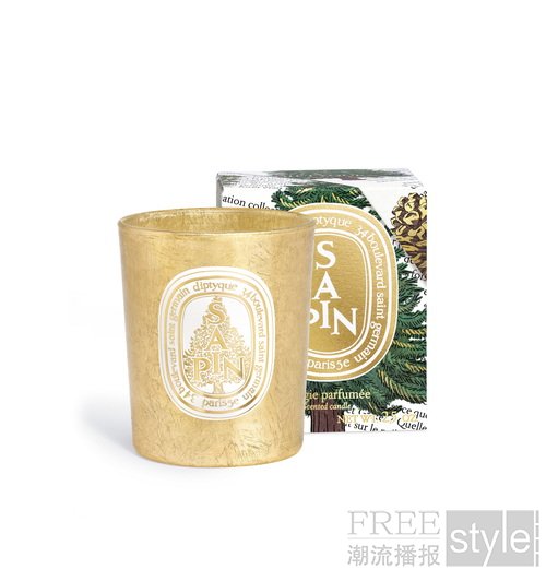 宛如冬日童话中那颗裹有一层金箔的松果,经典规格及小号冷杉(Sapin)香氛蜡烛亦披上手工打造的金色装饰外衣。白色与金色相间的Diptyque跃动字母饰以冷杉图案,全力绽放绚烂冬日的诗意浪漫。