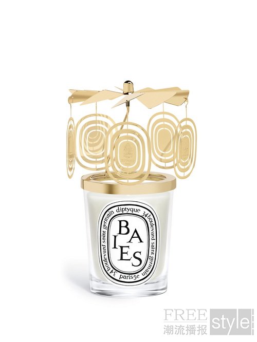不容错过的旋转烛罩同样披上了金装,经典椭圆形吊饰熠熠生辉,除搭配经典规格之外,还首次推出搭配超大规格香氛蜡烛的旋转烛罩。冬日奇幻光影烛罩经Diptyque重新演绎,以书店的台灯罩为灵感,空灵的几何设计在蜡烛点燃后,呈现精妙的光影效果。