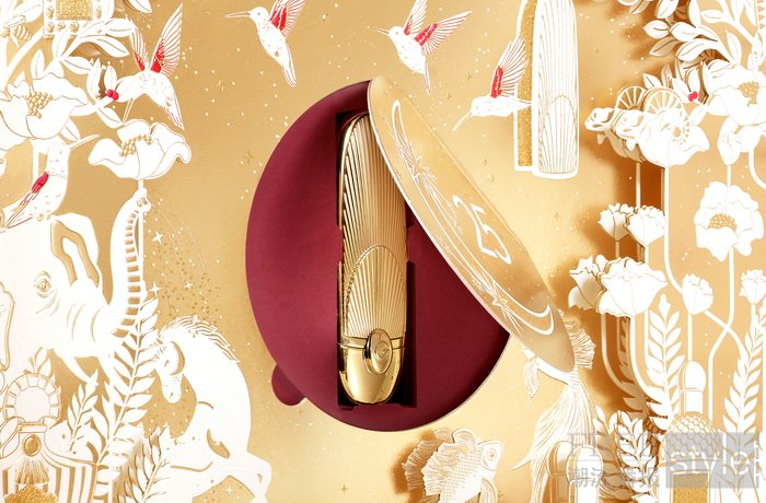 限量发售的日历倾呈香水、彩妆和护肤品等 25 款惊喜臻礼。臻选品牌经典之作,“娇”宠每一天。在 12 月 25 日这页,繁星点点,缀饰皎洁月光,打开纸窗,奢华臻礼赫然入目:法国娇兰臻彩宝石唇膏 510 绯红樱桃色(经典缎光)及其尽显装饰艺术风格的唇膏外壳。