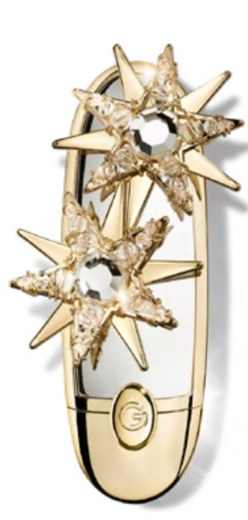 在 Géraldine Gonzalez 的灵感启发下,法国娇兰臻彩宝石唇膏也推出了珍藏版艺作。法国娇兰臻彩宝石唇膏礼盒(星光童话珍藏版)的镜面外壳上饰有两颗璀璨华贵的星星。珍藏版带编号,仅售 670 份。星光童话珍藏版配有三款经典色号:03 烟熏玫瑰色、214 心动番茄红和510 明艳正红色。