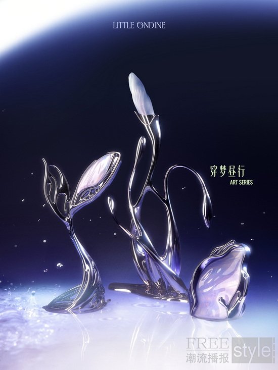 「浮萤」口红与「弥光」腮红搭配对应艺术装置,以树脂工艺搭配产品的流转光彩,让有机形态与流线型设计,模拟自然界的水、极光、海洋生物等线条与曲线,让彩妆不仅是色彩载体,更是握在手中的超现实艺术小物。同时兼顾艺术性和实用性,将产品嵌入装置,亦可当首饰收纳、置物架等家居摆件,化妆品也可以是妆点我们生活空间的“微观”艺术品。