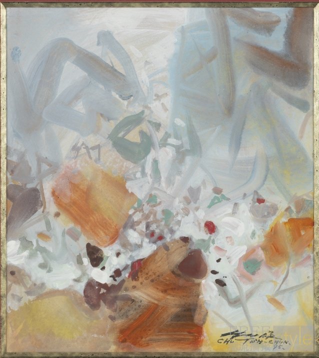 在经历数十年艺术表达的磨练后,朱德群的《第4号构图∙1995年6月8日》传达了崇高的精神能量和诗意的复杂情感。多年来,他开创一派引人入胜的抽象山水画风,其富表现力的笔触和艳丽的色调在作品中交织成新颖的和谐感与活力感。 戏剧性的明暗对比和光影的交互作用,赋予了作品一种震撼与深度,而此特色是朱德群 1970 年代在荷兰遇到林布兰作品中著名的戏剧性光影表现后所发展出的主题。此作附有由朱德群基金会开立、艺术家妻子暨正在筹备编纂的艺术家全集之联席编辑董景昭女士亲签之作品保证书。