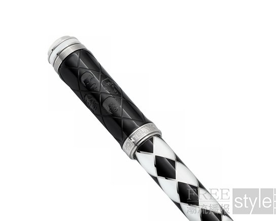 万宝龙著名人物系列致敬皇后乐队限量款书写工具(全球1975支),其限量数字旨在致敬皇后乐队经典录音室专辑《歌剧院之夜》(A Night at the Opera)的发行年份1975年,彰显乐队大胆前卫的艺术理念。笔杆饰以黑白菱格漆面,灵感源自主唱佛莱迪·摩克瑞著名的“小丑”演出服,不仅还原了其华丽夺目的舞台形象,更淋漓尽致地展现了他张扬不羁的个性与充满戏剧张力的表演风格。《歌剧院之夜》是皇后乐队的第四张录音室专辑,被誉为20世纪制作最为精良的专辑之一,充分展现四位乐队成员的才华横溢。万宝龙以《皇后二辑》(Queen II)与《炙热空间》(Hot Space)的标志性专辑封面为灵感,将四位音乐才子风格化的肖像剪影精妙镌刻于涂覆黑色PVD镀层的笔帽之上,致敬他们在音乐史上的卓越贡献。