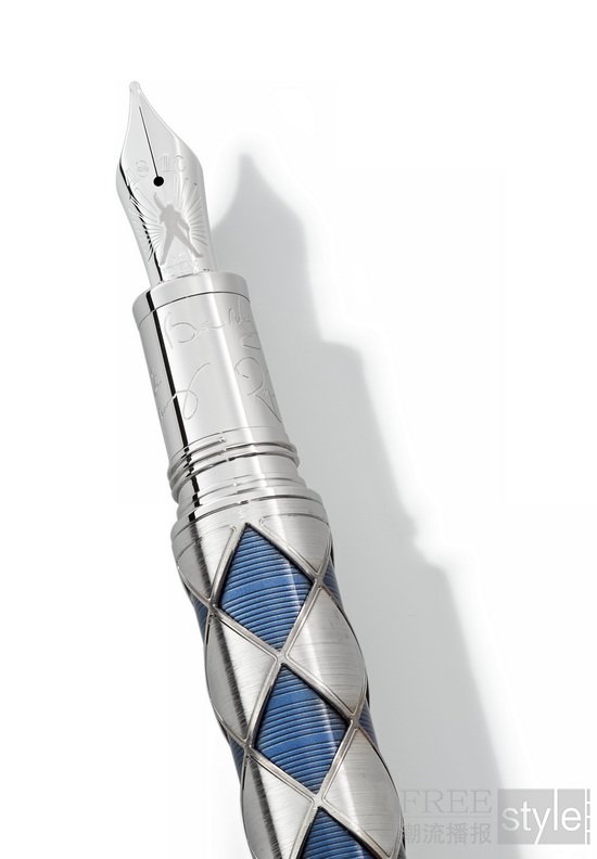 万宝龙著名人物系列致敬皇后乐队限量款书写工具(全球30支)旨在纪念皇后乐队第十五张、也是最后一张录音室专辑《天堂制造》(Made in Heaven)发行三十周年(1995-2025)。笔帽采用18K白金镂空雕刻工艺,其上镌刻专辑中的三首经典曲目名称:《Mother Love》《Made in Heaven》和《Too Much Love Will Kill You》。白金镂空雕刻下方的蓝色漆面呈现纹理醒目的凹槽,精准还原了黑胶唱片表面的纹路。镀铂金笔杆以白金菱格纹和蓝色半透明漆面交替润饰,其灵感源自主唱佛莱迪·摩克瑞舞台上经典的菱格“小丑服”造型。