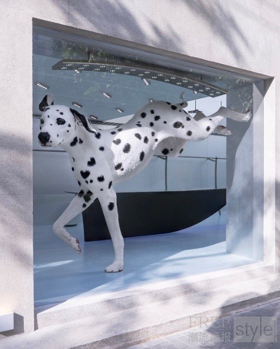 以 <The Bits: Light and Dark> 为主题构建的 ADERERROR Shanghai Space,将 0 与 1 这一微观信息单位转化为光与暗的视觉元素,并以“点阵图案(Dot Pattern)”这一图形语言,呈现对立概念共存的新可能性。此外,空间以拥有点状花纹的生物——斑点狗(Dalmatian) 为核心意象,为整个空间注入充满能量的叙事张力。通过这一象征性媒介,ADERERROR 进一步延展了与顾客之间的多维度交流,打造出沉浸式且充满生命力的空间体验。