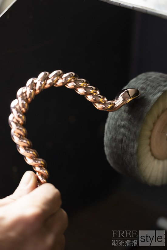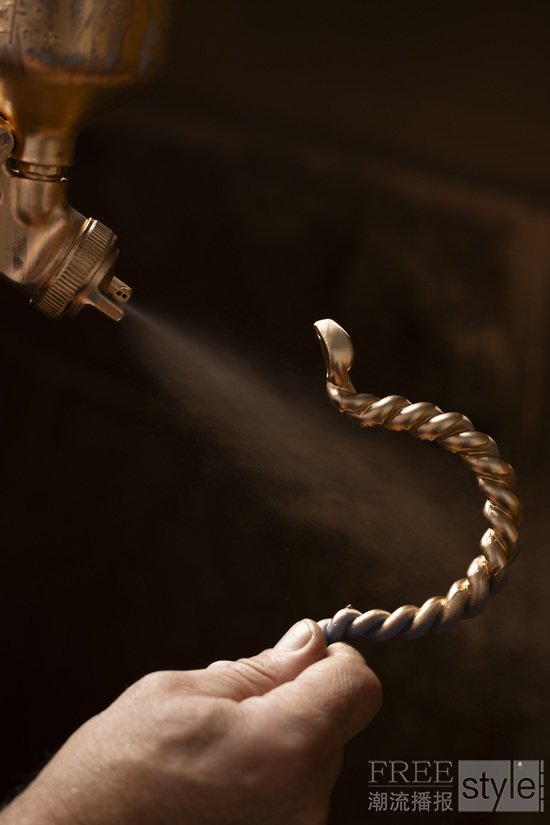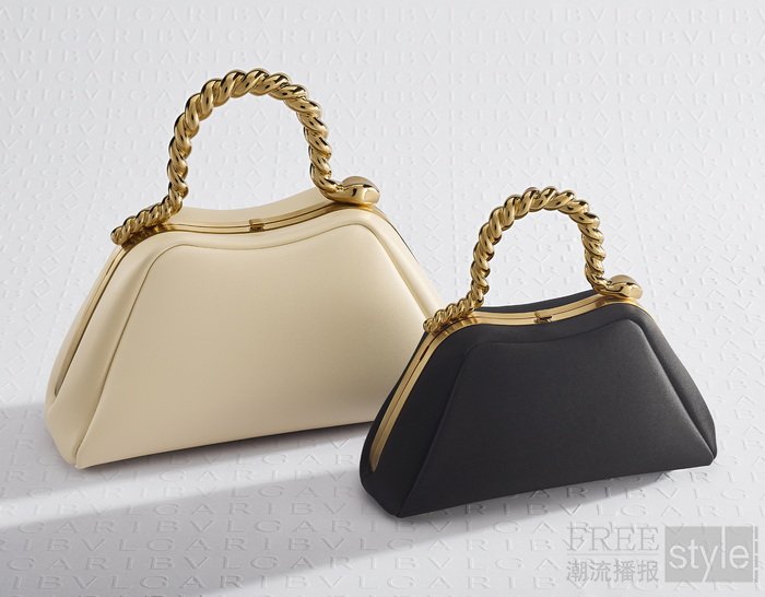 新款手提包的手柄轮廓经过重新设计,呈现出宛如灵蛇的S形曲线造型,同时巧妙融入了DESTREE品牌标志性的精致手工饰带元素。值得一提的是,饰带设计与宝格丽的历史传承紧密相连。二十世纪时,宝格丽便曾将精美的饰带用作缎带,与项链、吊坠相搭配。在此次推出的新品中,饰带的扭绳设计经过重新演绎,化身为灵动蜿蜒的金属曲线细节,并借助创新的电铸工艺实现了轻巧质感与考究设计的平衡。这一源自珠宝领域的精湛技艺,不仅彰显了宝格丽深厚的工艺底蕴,更创造出令人赞叹的反差美感:而熠熠生辉的金属材质却能展现出格外轻盈的质感。