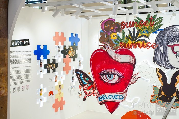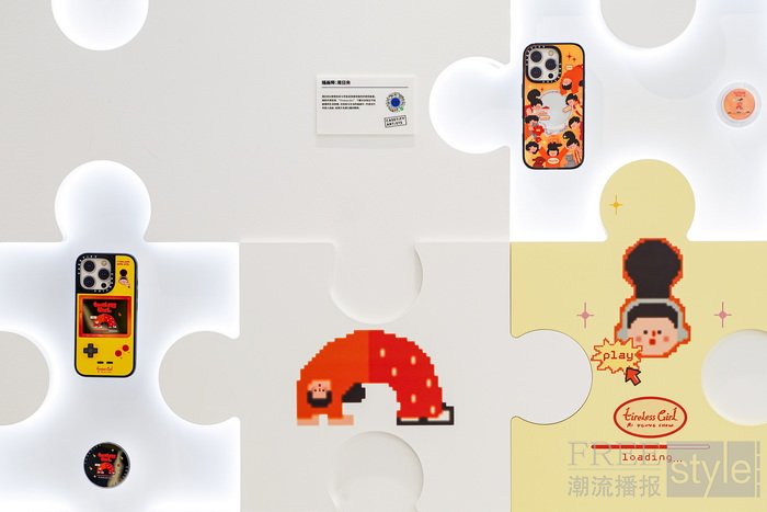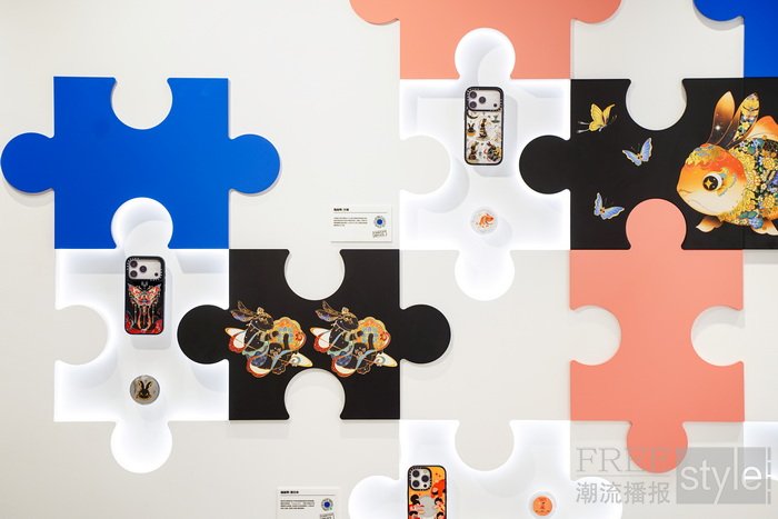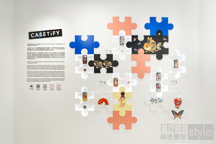 本次参展,CASETiFY 汇聚来自三个大洲四个国家的艺术家,带来多元艺术风格碰撞的作品。位于中心的拼贴设计装置象征着全球艺术家通过 CASETiFY 相互连接、彼此交融。整个展区以白色为基调,点缀以粉色、蓝色拼图造型装饰,观众步入其间,仿佛置身于灵感的无界场域。