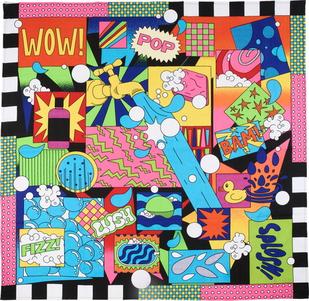 这是一次大胆创新的合作,因为环保多用巾上的每个元素都是来自 LUSH 礼盒、创意及零售团队的脑力震荡:“ 这是一款让 LUSH 与普普艺术相遇的设计,在大胆的色彩和充满玩味的图案之中互相碰撞,加上电光般的色彩区块和夺目图案,展示一场充满活力的沐浴体验。霓虹怀旧与趣味插画交织,每一次起泡、浸浴、磨砂,都是一场缤纷的视觉盛宴。”