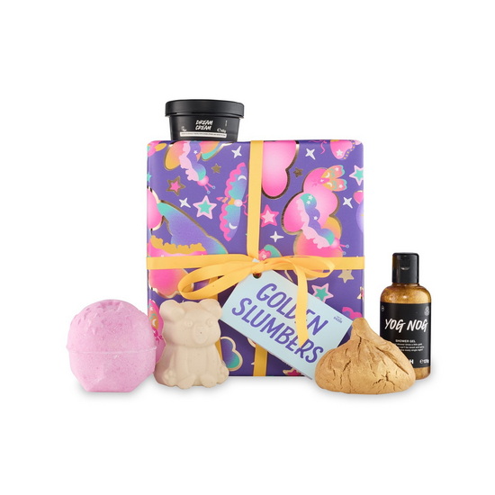 这款礼盒由 LUSH 创意设计师 Sarah Wall 设计:“ 我运用缤纷色彩点亮每个角落,再加上闪烁烫金细节,打造成一份奢华又充满玩味的神奇礼物。这是一场为放肆玩乐和尽情想像而生的庆典,犹如带你进入一个凡事皆有可能的甜梦。”