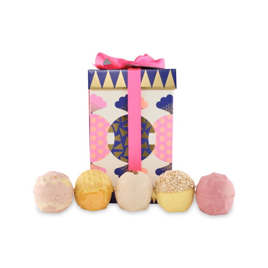 礼盒内容: 椰枣布丁汽泡弹 、乐天爆米花汽泡弹 、节庆蛋糕汽泡弹 、甜如蜜汽泡弹 、燕麦奶汽泡弹