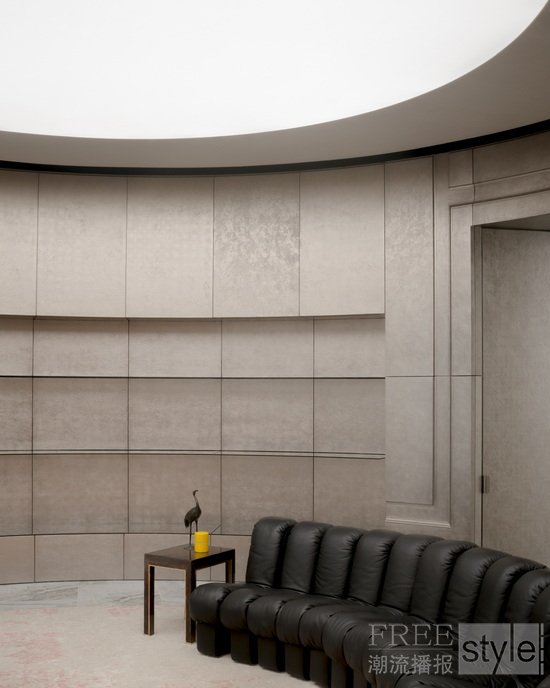 新店坐拥三个楼层,每处空间皆相继展开,呈现出开放、柔和温润甚至近乎博物馆式的空间表达,为系列作品营造独具一格的展示氛围。简洁的线条,克制的张力,以及恰到好处的平衡感,尽显品牌创意总监Anthony Vaccarello 的美学理念。