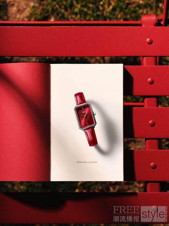 在该系列丰富的配色中,“石榴红”款无疑是极具张力的选择。红色表盘与同色系表带相映成趣,形成和谐而鲜明的视觉效果,这一抹浓郁红色犹如雪地中跃动的篝火,温暖而夺目。无论是搭配沉稳大衣或是柔软的针织面料,它都能迅速成为视觉焦点,赋予造型以热情与活力。