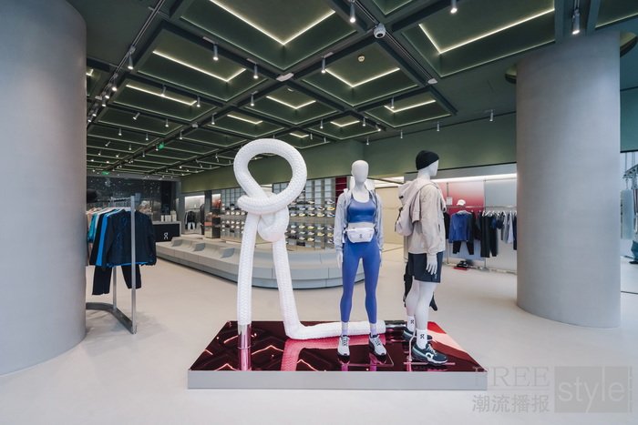 为庆祝新店的盛大开业,店铺以放大鞋带精心重构的蝴蝶结为视觉主题,打造充满节日氛围的陈设,通过跨品类搭配推荐,展现从功能细节到生活美学的巧妙融合。同时,店内同步呈现On昂跑 x Sky High Farm goods首款联名胶囊系列与On昂跑 x Bureau Borsche全新推出的IKON系列,二者分别探寻自然本源与潮流美学,共同呈现On昂跑在可持续实践与潮流生活方式的多元探索。