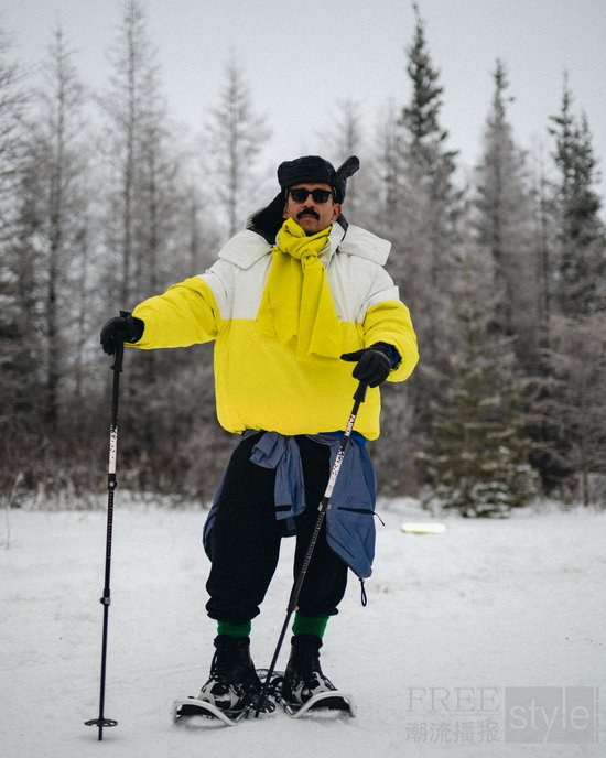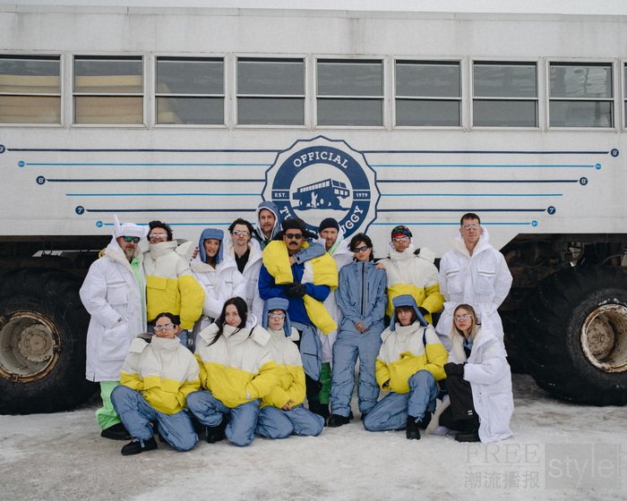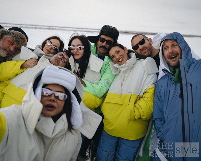 宾客们身着Snow Goose by Canada Goose 2025秋冬胶囊系列——从与雪域浑然天成的白色派克大衣,到映照哈德逊湾海冰的反光蓝色,再以鲜明亮黄和荧光绿进行点缀,跃动于皑皑雪色之间。