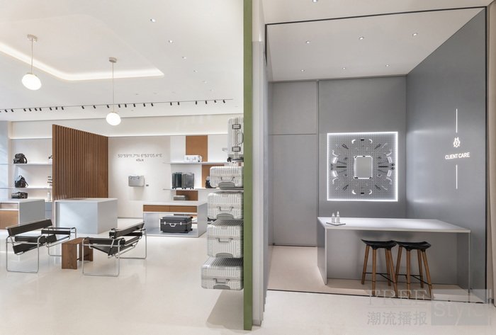 店内亦设有贴纸墙,展示 RIMOWA(日默瓦)的个性彩色贴纸套装系列,并配备生活方式单品墙与专业维修服务,为顾客提供全面的产品体验与售后服务。