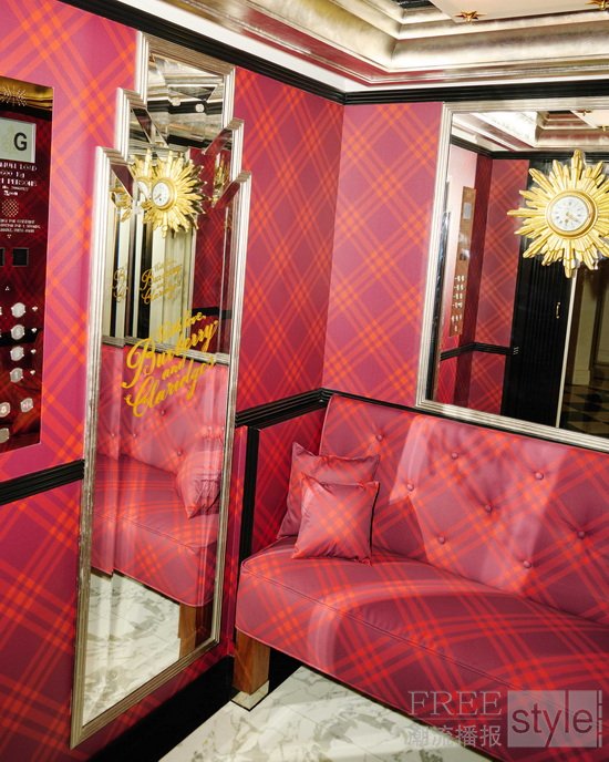 宾客由佩戴标志性Burberry 格纹围巾的门童迎接,客房钥匙、电梯内部、沙发和靠枕皆融入柔软格纹图案,呈现温馨节日氛围。