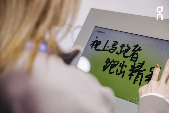 除产品与科技展示外,展台还提供多项互动体验。在许愿墙互动区域,现场参与者可以写下自己的祝愿,同步在大屏循环展示,同时可打卡留影。此外,现场参与者扫描二维码关注On昂跑小红书,即可参与DIY体验,领取限量鞋袋。2025上海马拉松中签跑者,凭参赛号码牌并关注On昂跑小红书即可领取每日限量跑者福袋,内含品牌配饰与手写加油卡,感受来自On昂跑的诚挚支持与祝福。